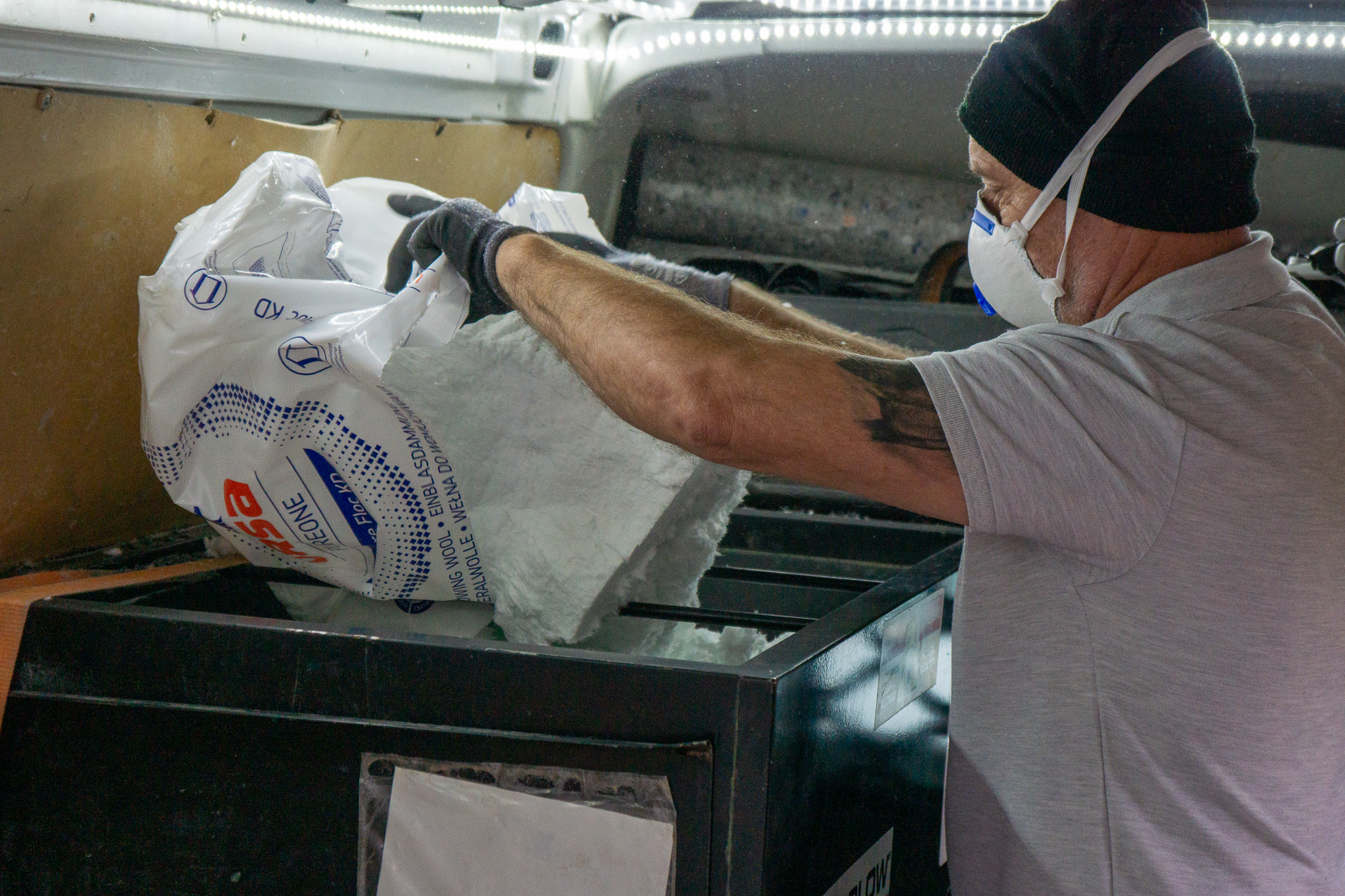 Im nächsten Schritt wurde die gesamte Geschossdecke flächig mit Dämmstoff aufgeblasen, um eine gleichmäßige, setzungssichere und fugenlose Dämmschicht sicherzustellen. Abschließend wurde ein begehbarer Wartungssteg montiert – stabil, sicher und ideal für zukünftige Arbeiten oder Inspektionen im Dachraum.